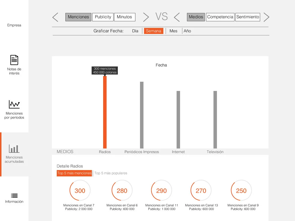 How can you show to the customer so many variables: the money, the media, the category? How much money does the company save by being in a full page in the most prestigious newspaper in the country? Or seven minutes in the most viewed T.V. channel? And the other side of the project: how can we make this complex task of collecting this information, the most user-friendly as possible for the employees?