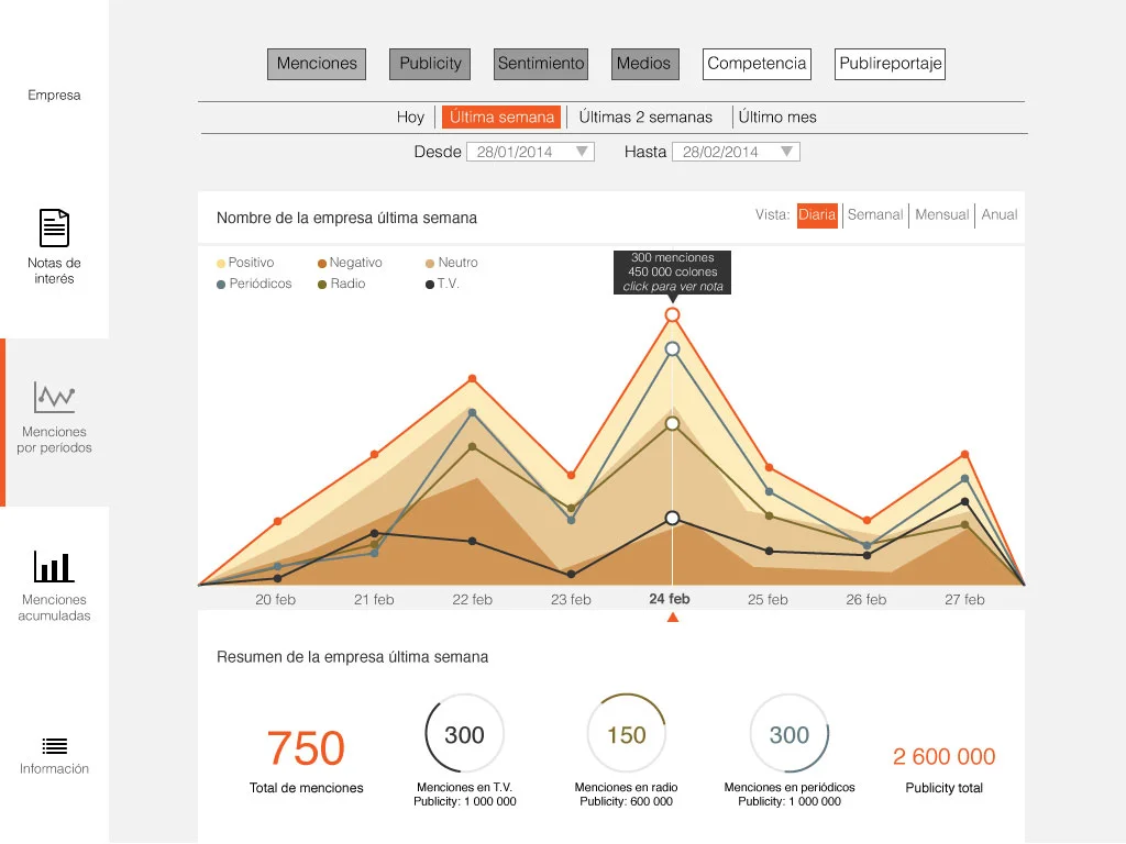 Several times a day, they send to their clients, news about them, but classified in categories, such as positive news, neutral, negative, who did it, what topic, etc. But the most important outcome of this work is to let know to the client how much money they save by having free publicity.